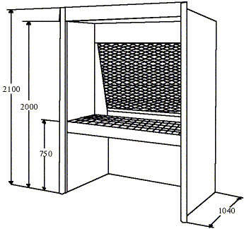 | Arbetsborden är av gallerdurk, djup 600 mm, botten